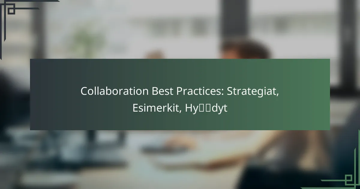 Yhteistyön parhaat käytännöt ovat elintärkeitä organisaatioiden menestykselle, sillä ne mahdollistavat tehokkaan viestinnän ja selkeät strategiat tiimien välillä. Hyvin toteutetut yhteistyömallit edistävät innovaatioita, parantavat tuottavuutta ja vahvistavat työntekijöiden välisiä suhteita. Eri toimialoilla, kuten IT:ssä ja terveydenhuollossa, käytetään erilaisia lähestymistapoja, jotka tukevat yhteisten tavoitteiden saavuttamista ja parantavat lopputuloksia.