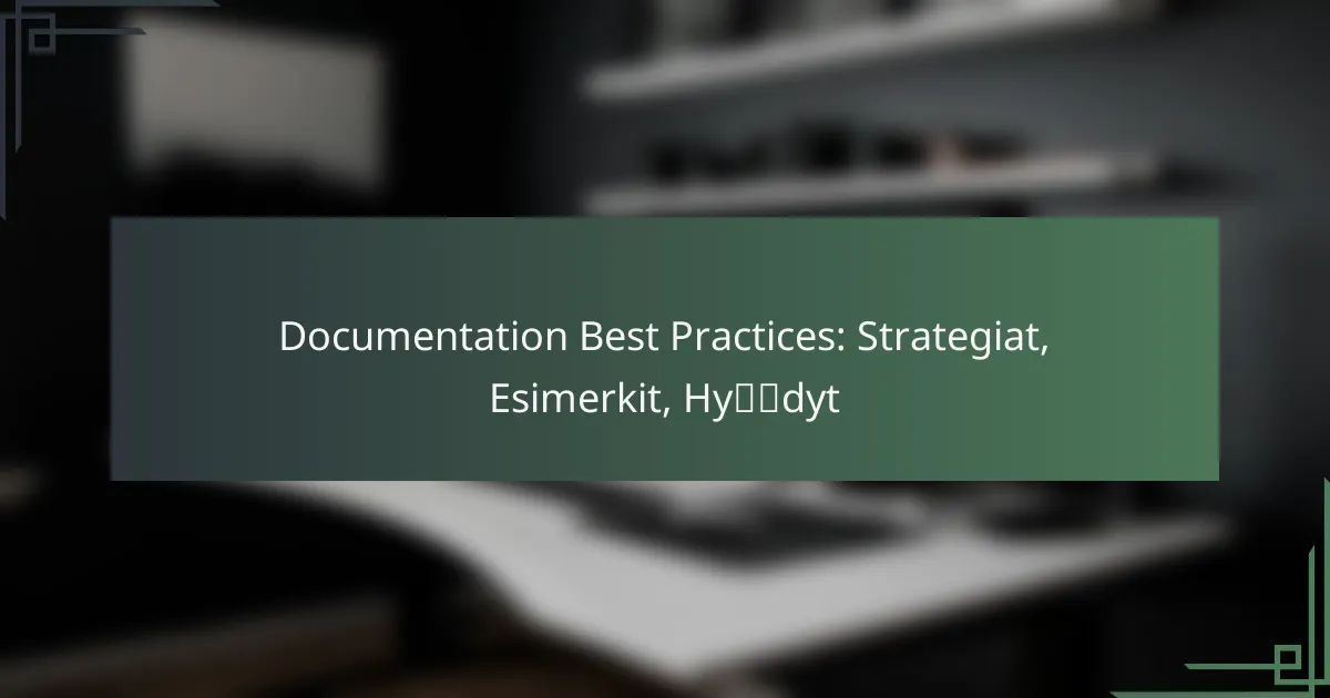Dokumentaation parhaat käytännöt sisältävät selkeät ja johdonmukaiset menetelmät, jotka parantavat tiedon jakamista ja ymmärtämistä organisaatiossa. Hyvä dokumentaatio tukee yhteistyötä, vähentää virheitä ja helpottaa uusien työntekijöiden perehdyttämistä.