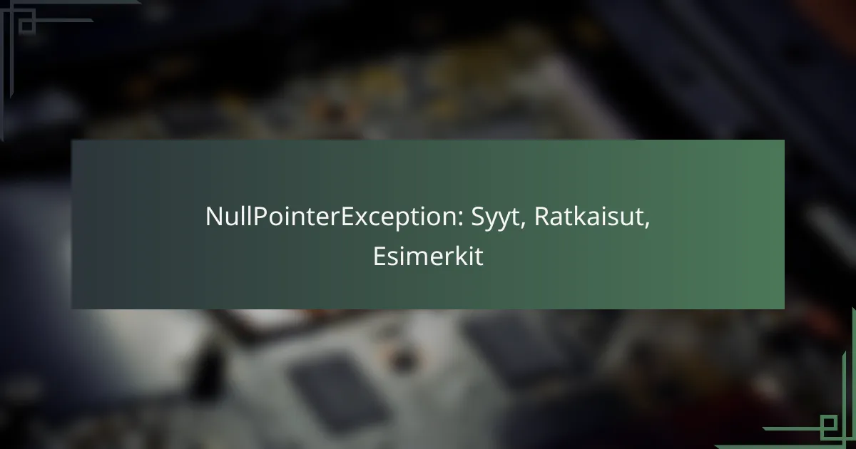 NullPointerException on yleinen virhe Java-koodissa, joka syntyy, kun ohjelma yrittää käyttää objektia, joka on null. Tämän virheen tunnistaminen on tärkeää, jotta voidaan estää ohjelman kaatuminen ja parantaa koodin laatua.
