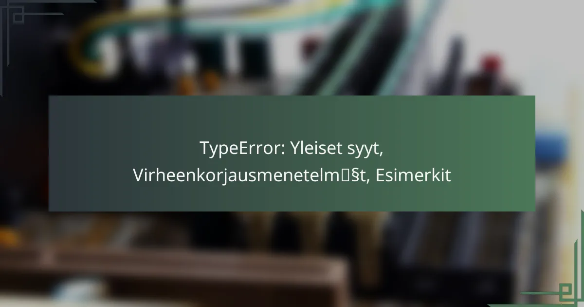 TypeError-virhe syntyy, kun ohjelma yrittää käyttää väärän tyyppisiä arvoja. Yleisiä syitä ovat virheelliset muuttujat, yhteensopimattomat operaatiot, virheelliset funktiokutsut, tyhjät arvot ja odotetun sekä todellisen tietotyypin ero.